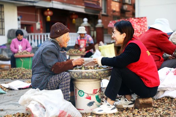 在浙江省淳安县汾口镇杨旗坦村股份经济合作社,党员助农服务队成员走进农户家中帮忙挑拣茶果、摊晒茶籽,解决农忙时节人手不足的难题 淳安县委组织部供图