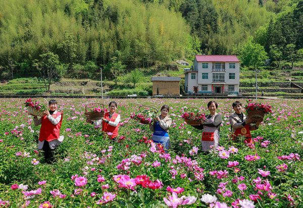 浙江省淳安县临岐镇党员志愿者在吴峰村指导农户如何选花、修花,提升芍药花的品质 淳安县委组织部供图